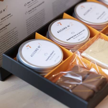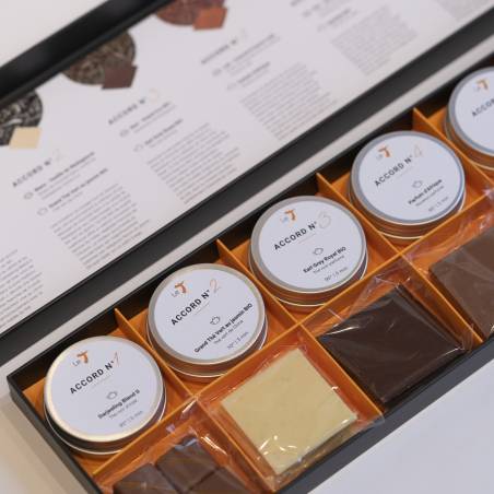 Découvrez une expérience unique où la finesse de nos thés rencontre le savoir-faire chocolatier d'Absolument Chocolat. Ce coffret vous propose six accords subtils et harmonieux, mariant des thés raffinés à des chocolats aux nuances exquises, savamment combinés pour éveiller les sens. Chaque portion généreuse invite au partage, avec de quoi infuser une théière.